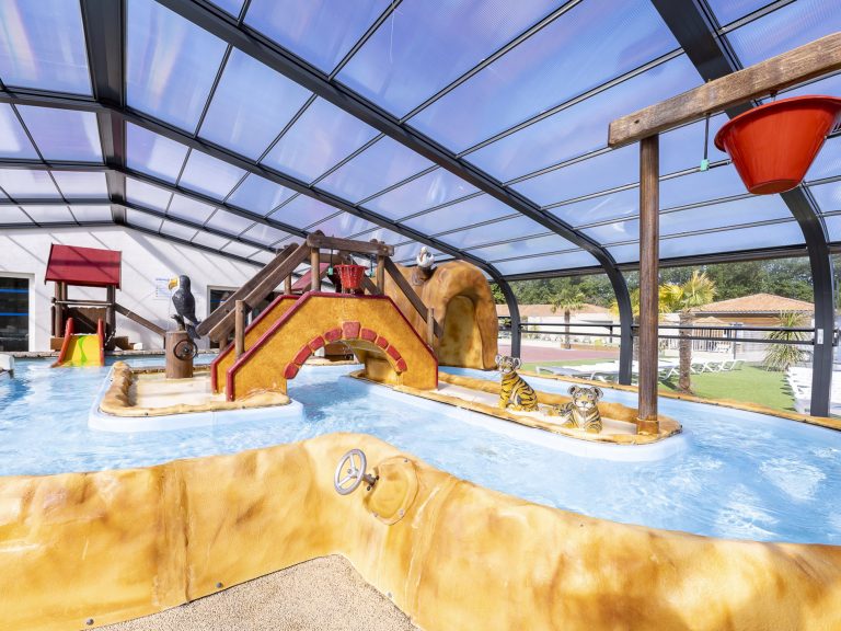 Notre Camping en Vendée avec piscine couverte vous propose un parc aquatique chauffé et accessible à tous. L’accès au parc aquatique complet est inclus dans le prix de vos vacances !