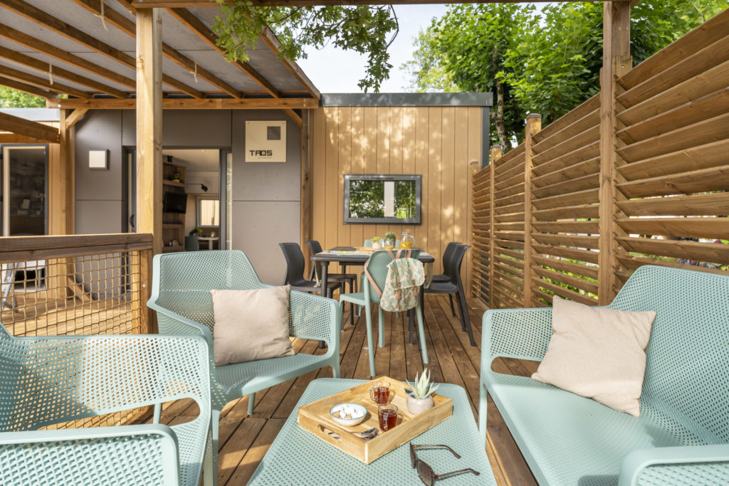 Mobil-home avec terrasse, équipement standard, idéal pour passer un agréable séjour.